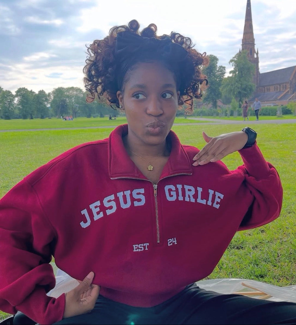 Jesus Girlie Varsity Half Zip Up
